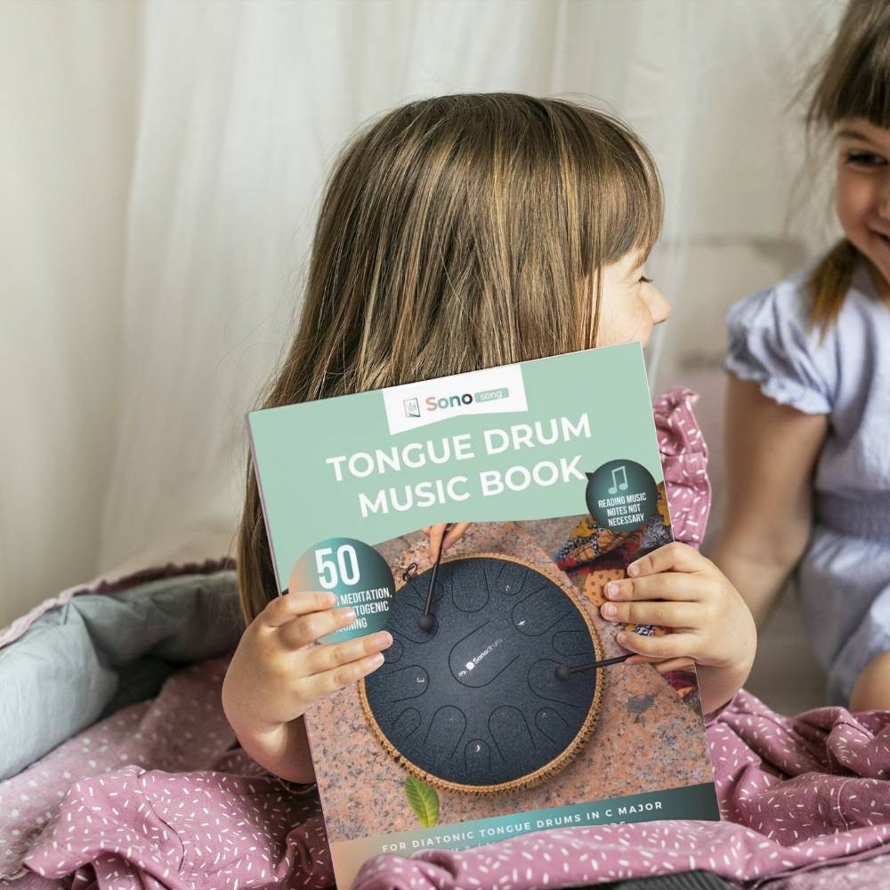The tongue drum songbook is packed with tips and tricks for playing the tongue drum, care instructions, further playing techniques and no previous knowledge of music is required.